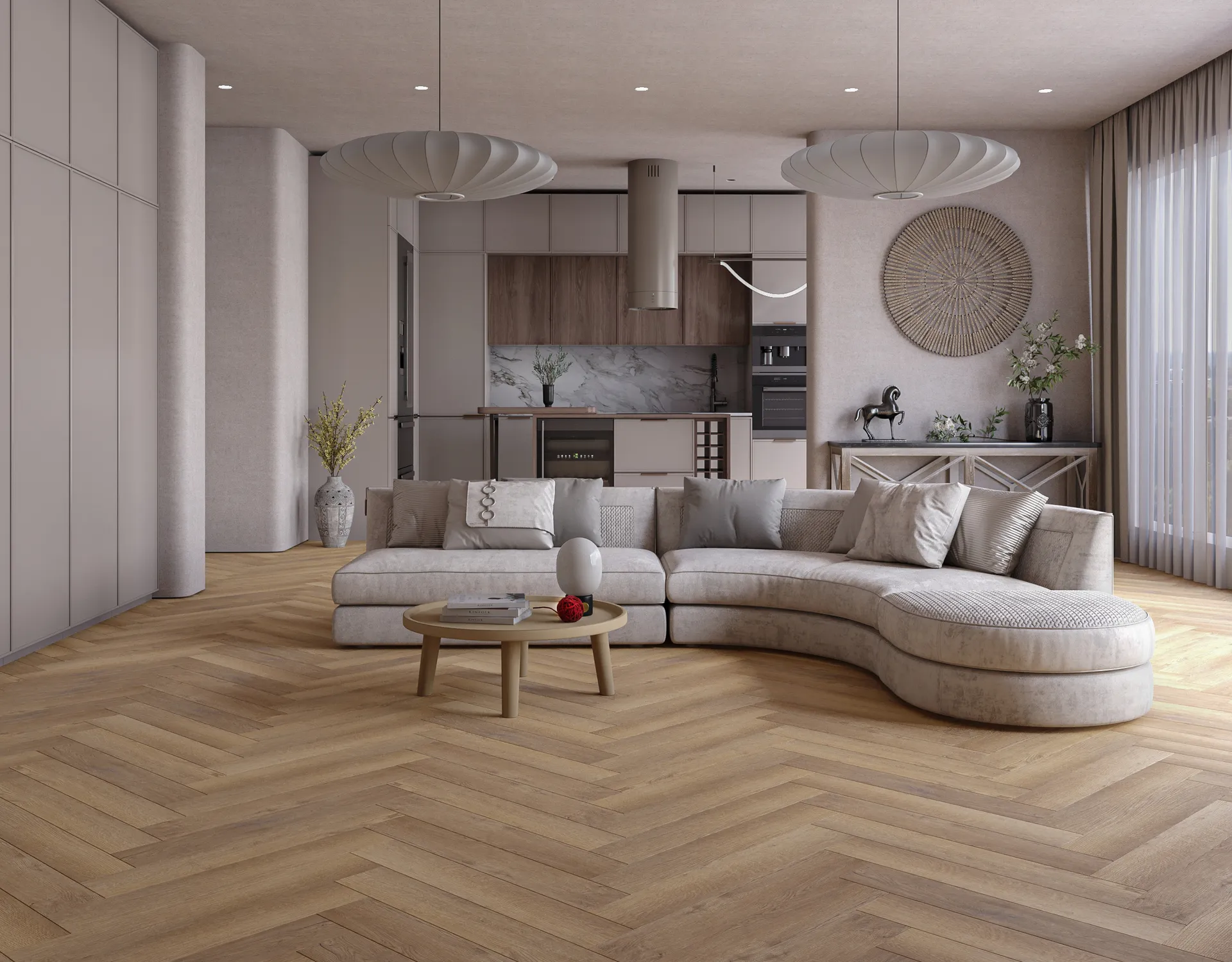 Многослойное покрытие включает UV-слой, предотвращающий выгорание и потерю цвета, а также полиуретановый слой с технологией Antiscratch, который надежно защищает пол от мелких царапин и потертостей. Встроенная подложка IXPE толщиной 1,5 мм обеспечивает дополнительный комфорт при ходьбе, улучшает шумоизоляцию и упрощает монтаж.